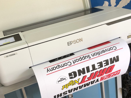 A1サイズ(594×841mm)までのポスター出力・表面へのラミネート加工(コールドラミネーター)、1,000mmのカッティングステッカー、350mmのアイロンプリント加工などは自社設備で行っています。